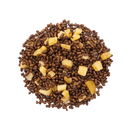 Гречишный чай (или Ку Цяо) с манго — это идеальный «нечайный» напиток для тех, кто ценит пользу и необычные вкусовые сочетания. Его главная особенность — полное отсутствие кофеина и глютена. В этом купаже классический кондитерский профиль татарской гречихи дополнен сочными кусочками манго и свежестью лайма, что превращает чаепитие в дегустацию экзотического десерта.