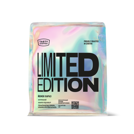 Йемен, Хараз, Limited Edition, натуральная обработка, темный виноград, голубика, клубника, карамель, обжарка под фильтр, удаини, Q-grade 88